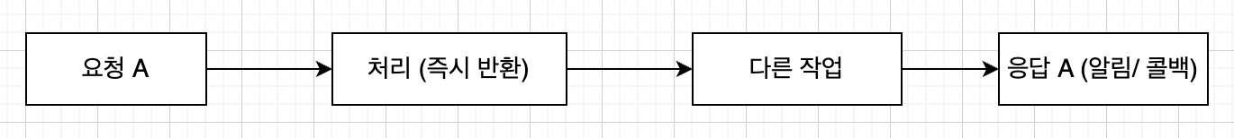 요청을 보낸 후 바로 다른 작업을 수행하며 완료되면 콜백 등을 통해 알림을 받습니다.