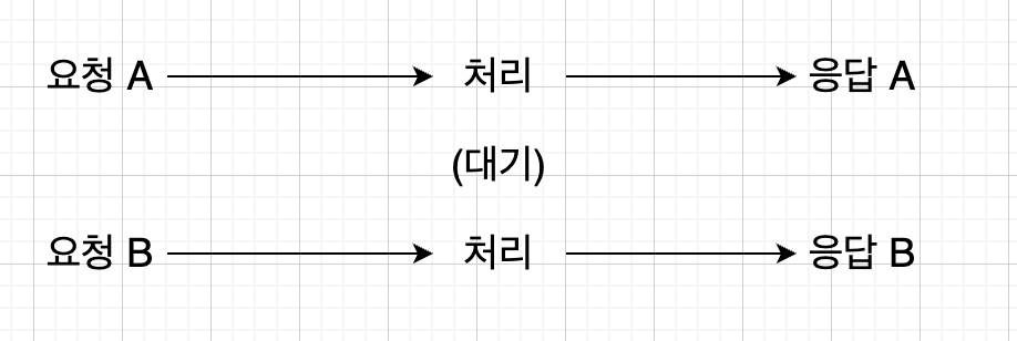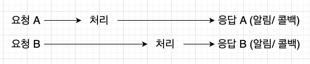 ex) 전통적인 웹 요청 방식으로, 서버에 요청을 보내고 응답을 받을 때까지 기다립니다.