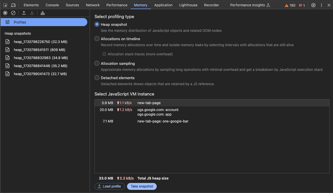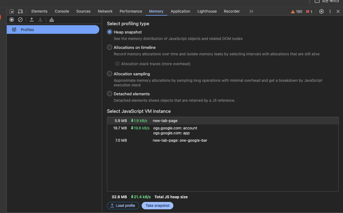 크롬 개발자 도구(DevTools)에서 Heap Snapshot 비교하기