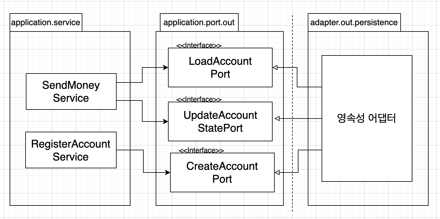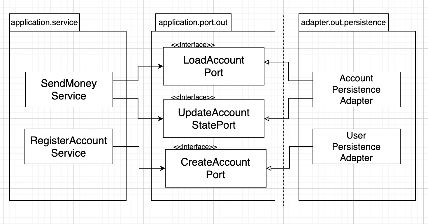 영속성 어댑터는 애플리케이션에 필요한 LoadAccountPort와 UpdateAccountStatePort라는 2개의 포트를 구현했다.