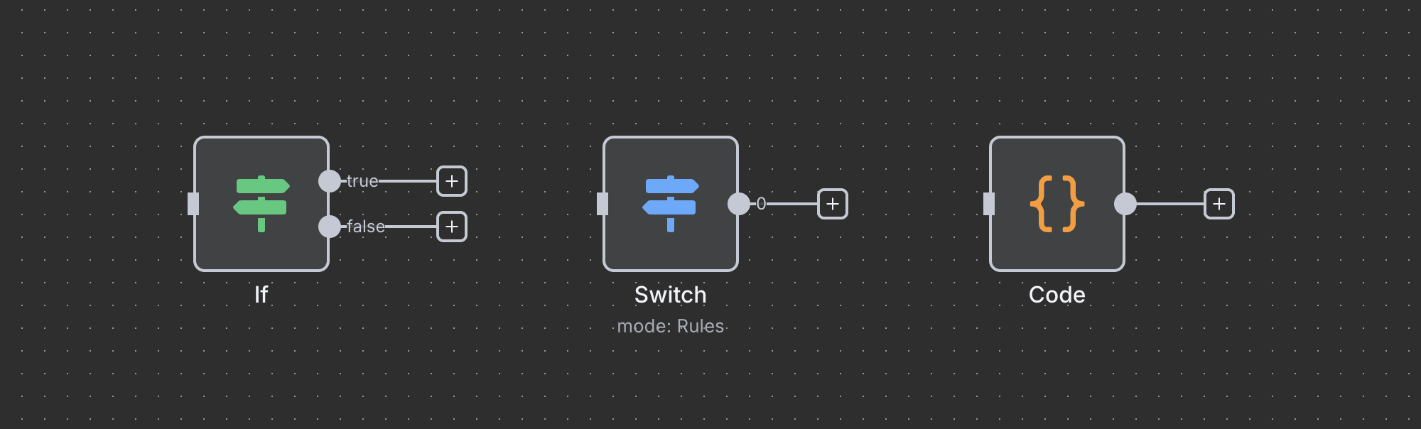 2. If / Switch / Function(Code) Node — ๋ถ๊ธฐ์ ๊ฐ๊ณต์ 3์ข ์ธํธ