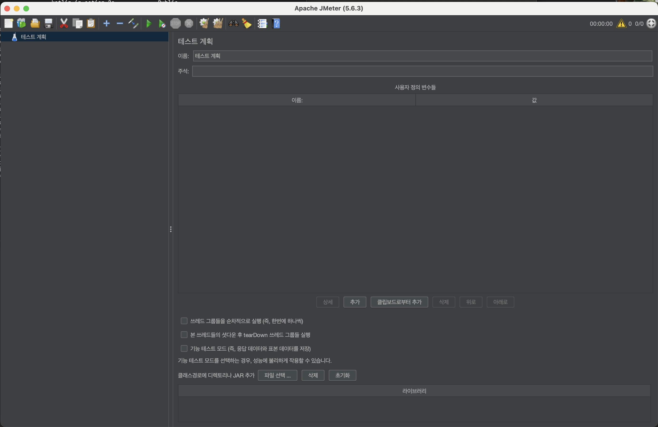 위와 같은 명령어를 실행하면 Swing 기반 GUI가 열리면서 Test Plan 화면이 나타납니다.