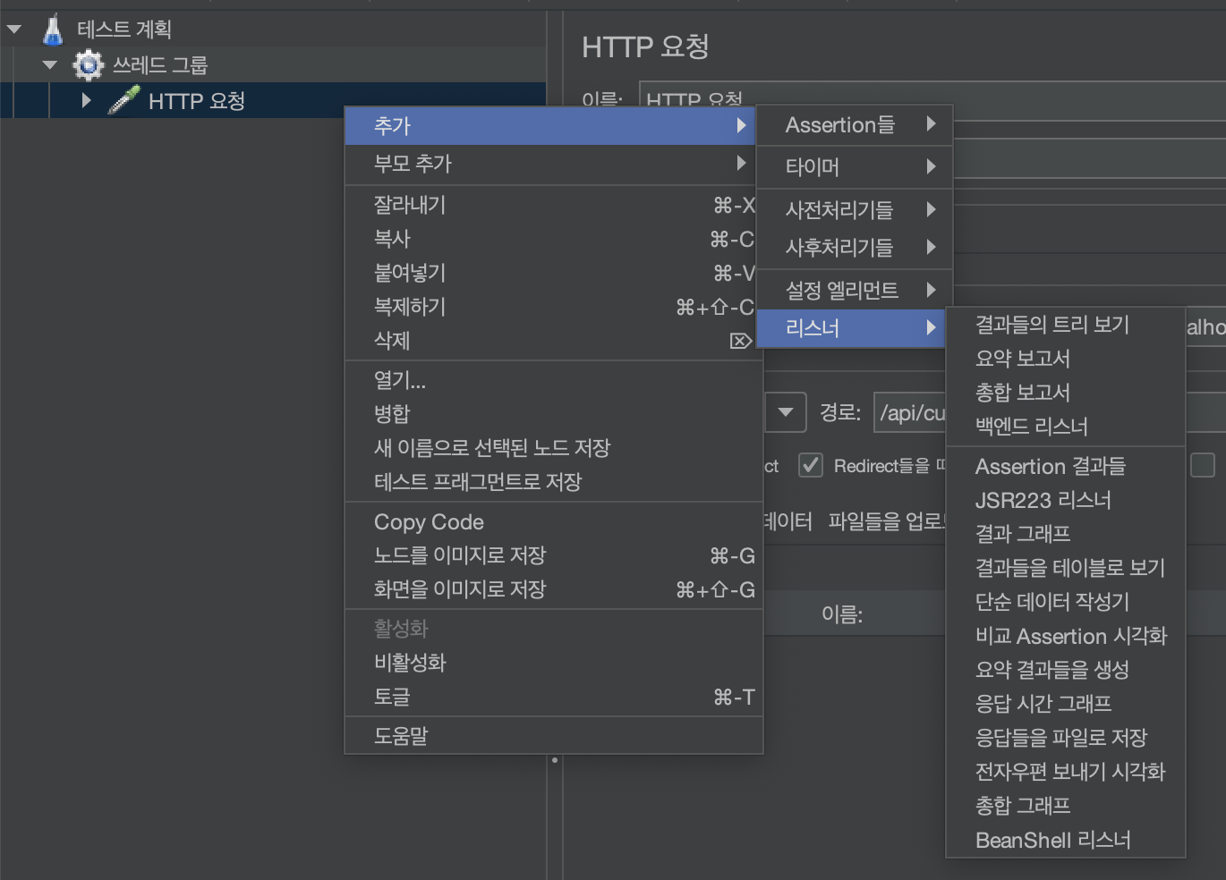 - 예: “Thread Group” → “HTTP Request” → “Listener(결과보기)”를 추가하는 것만으로도 간단히 테스트 가능.