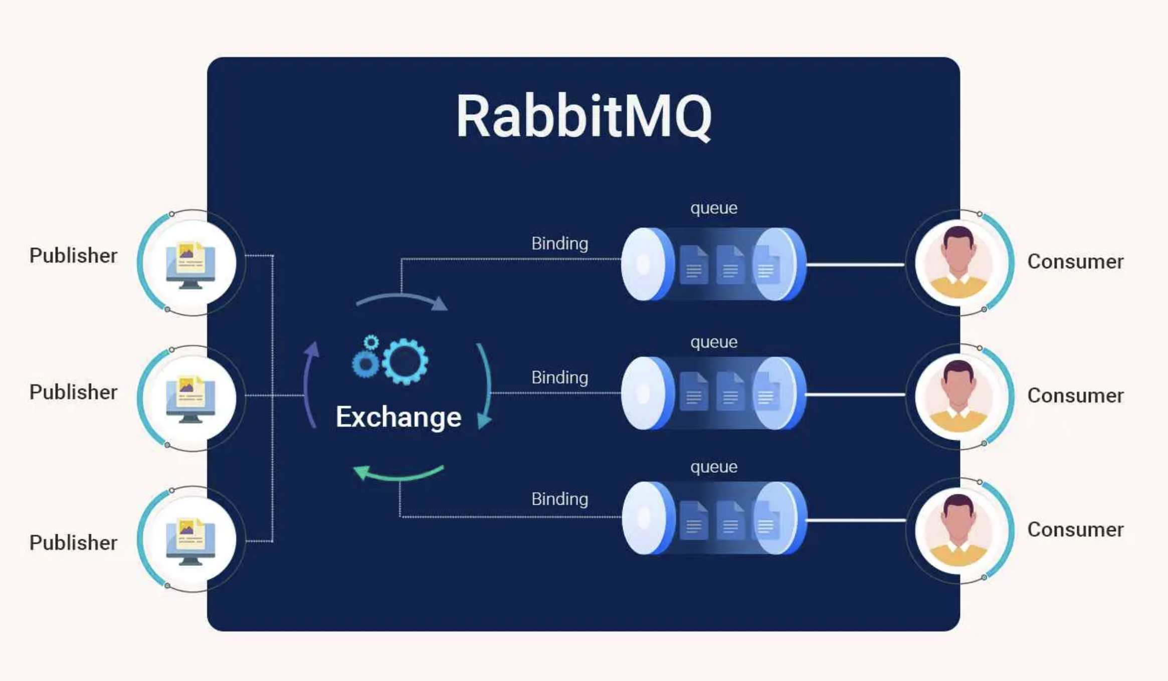 - Publisher가 메시지를 Exchange에 발행하면, Binding 규칙에 따라 하나 혹은 여러 Queue로 복사·분기됩니다(Direct/Topic/Fanout/Headers).