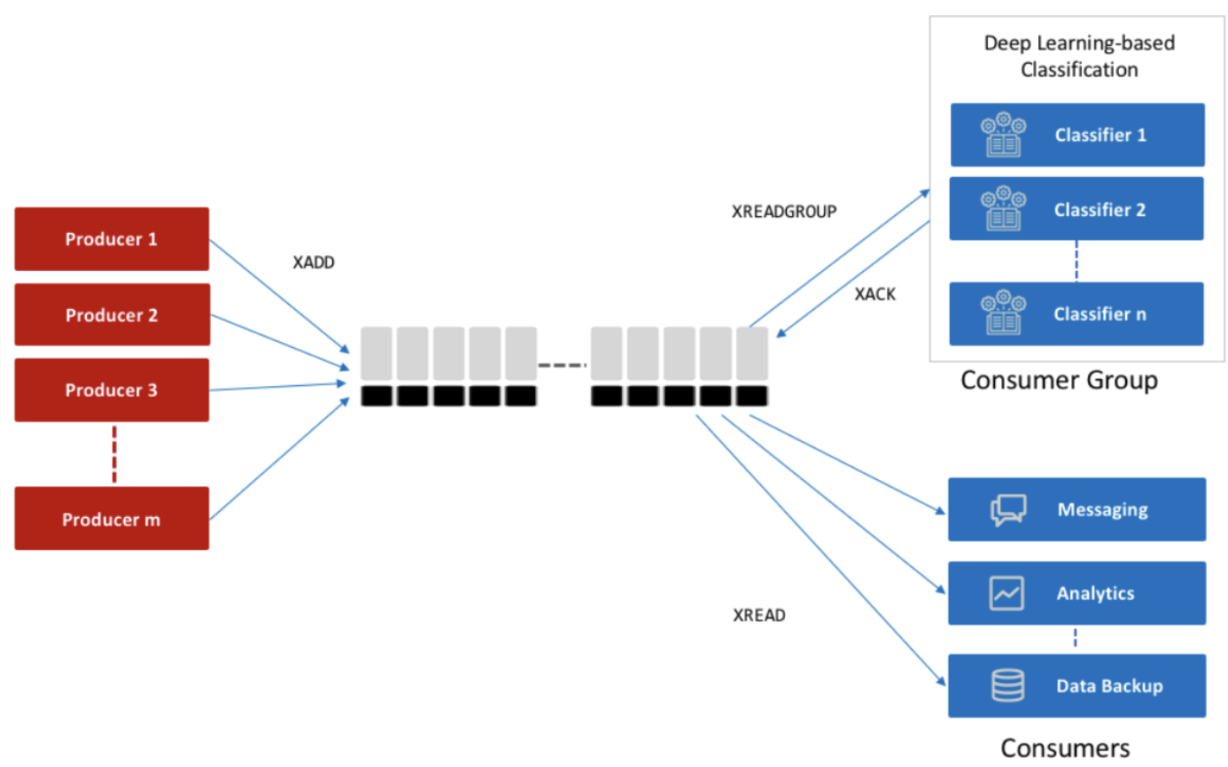 XADD로 스트림에 메시지를 append합니다(시간순 로그). - Consumer Group이