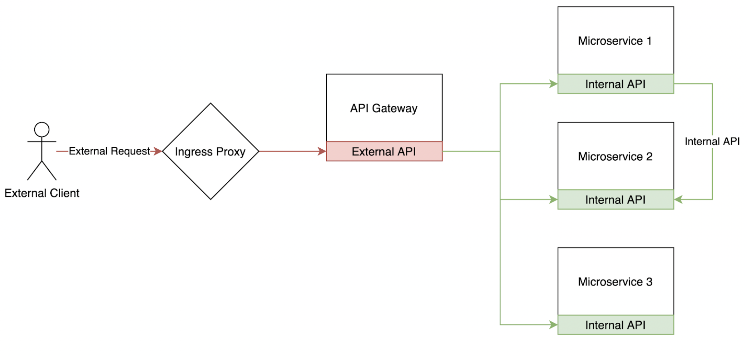 이 구조에서는 보통 API Gateway나 프록시가 경계 역할을 합니다.