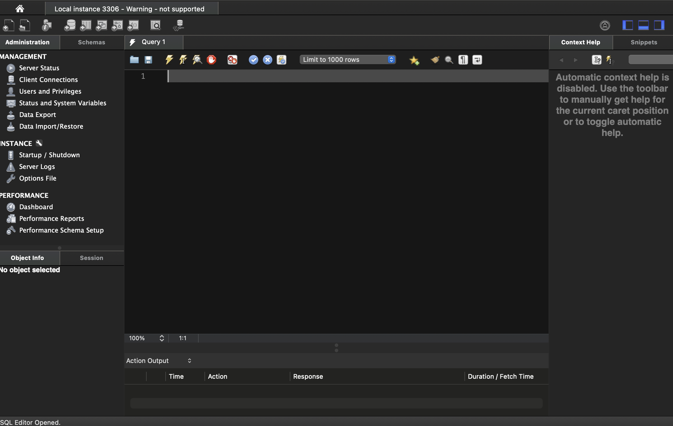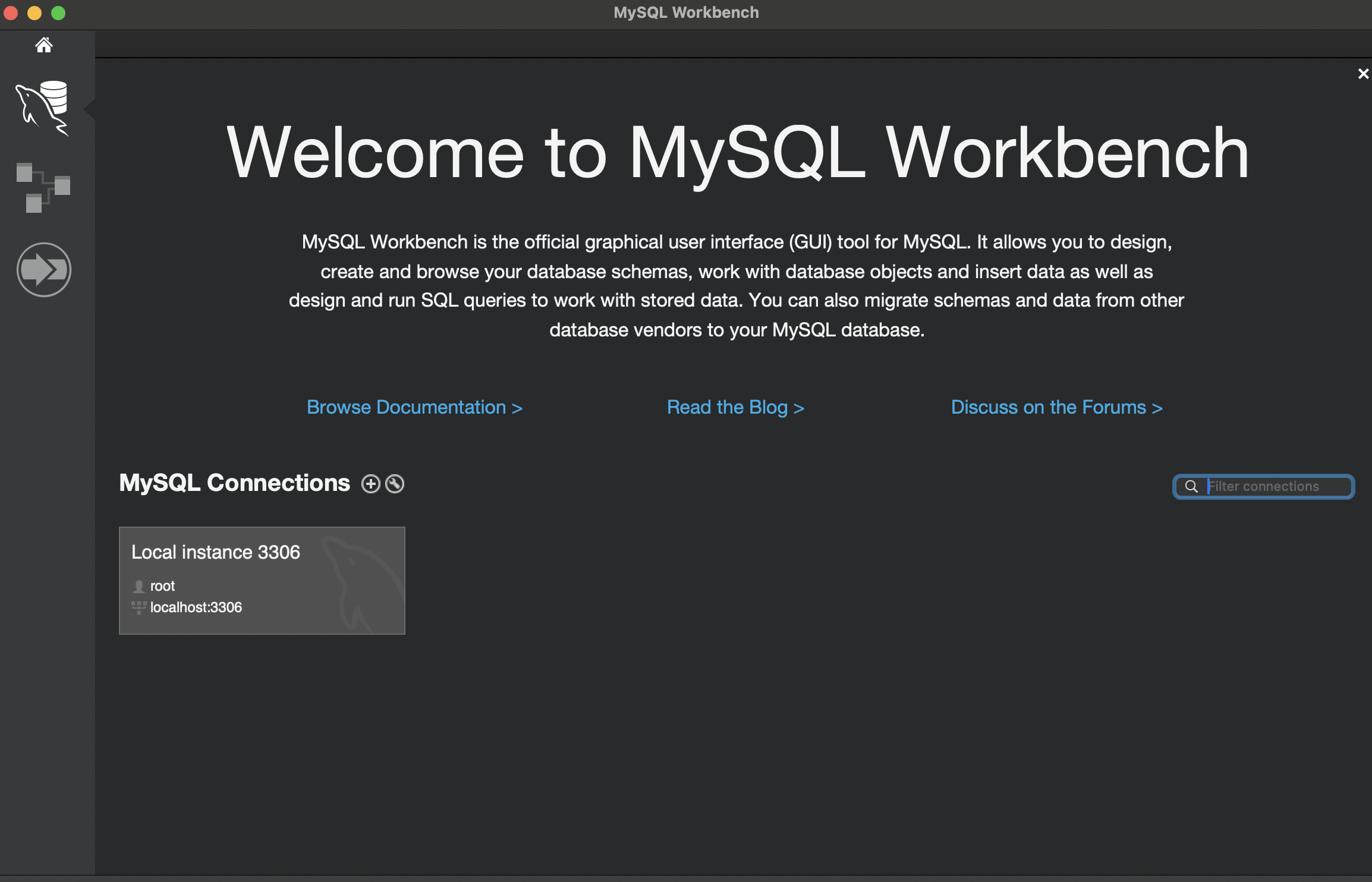 비밀번호를 입력하면 Local instance 3306에 접속할 수 있는 것을 확인할 수 있습니다.