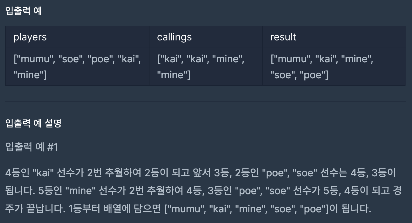 - orderMap을 업데이트하여 각 선수의 새로운 위치를 반영합니다. - 마지막으로 변경된 players 배열을 반환합니다.