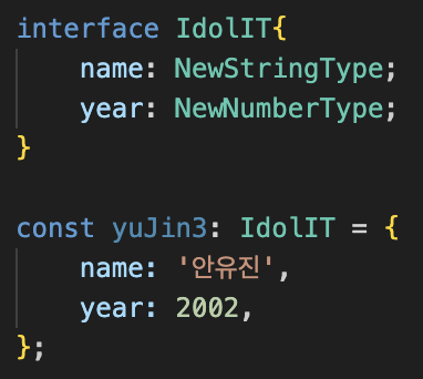 그리고 인터페이스를 선언하는데 위에서 직접 만든 타입을 활용해서 만들 수 있습니다.