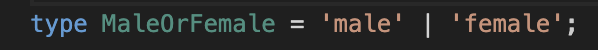 오직 male 또는 female 중 하나의 값만 가질 수 있도록 문자열 리터럴 유니온 타입으로도 정의가 가능합니다.