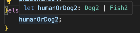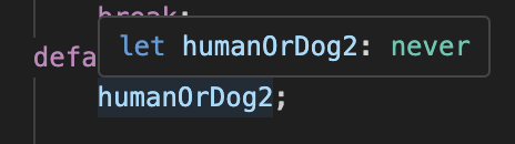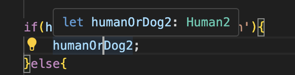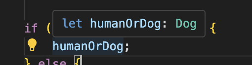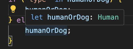 else에 속하는 type이라는 키값이 존재하지 않는 Human이라는 타입으로 유추가 되는 것을 확인할 수 있습니다.