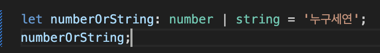 numberOrString이라는 변수는 number 또는 string이 될 것이라고 선언해 두었습니다.