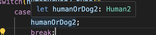 예를 들어, 위에 선언한 humanOrDog2.type을 switch 해보겠습니다.