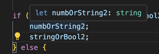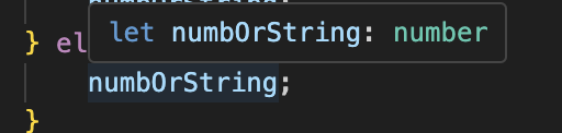 그리고 else안에 있는 numbOrString 변수는 number type으로 유추되는 것을 확인할 수 있습니다.