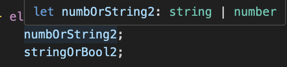 예를 들어, number 또는 string이 들어가는 변수 numberOrString2와 string 또는 boolean 변수 stringOrBool2를 선언해 보겠습니다.