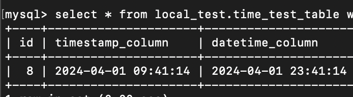 변경된 timezone을 기준으로 timestamp이 변경되어 입력되는 것을 확인할 수 있습니다.