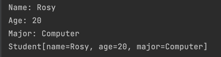 System.out.println("Name: " + name + ", Age: " + age + ", Major: " + major);