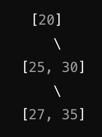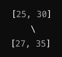 - 27은 25보다 크고 30보다 작기 때문에 오른쪽 서브트리로 이동합니다.