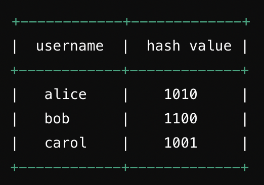 - 해시 함수는 각 "username" 값을 해시 값으로 변환합니다.
