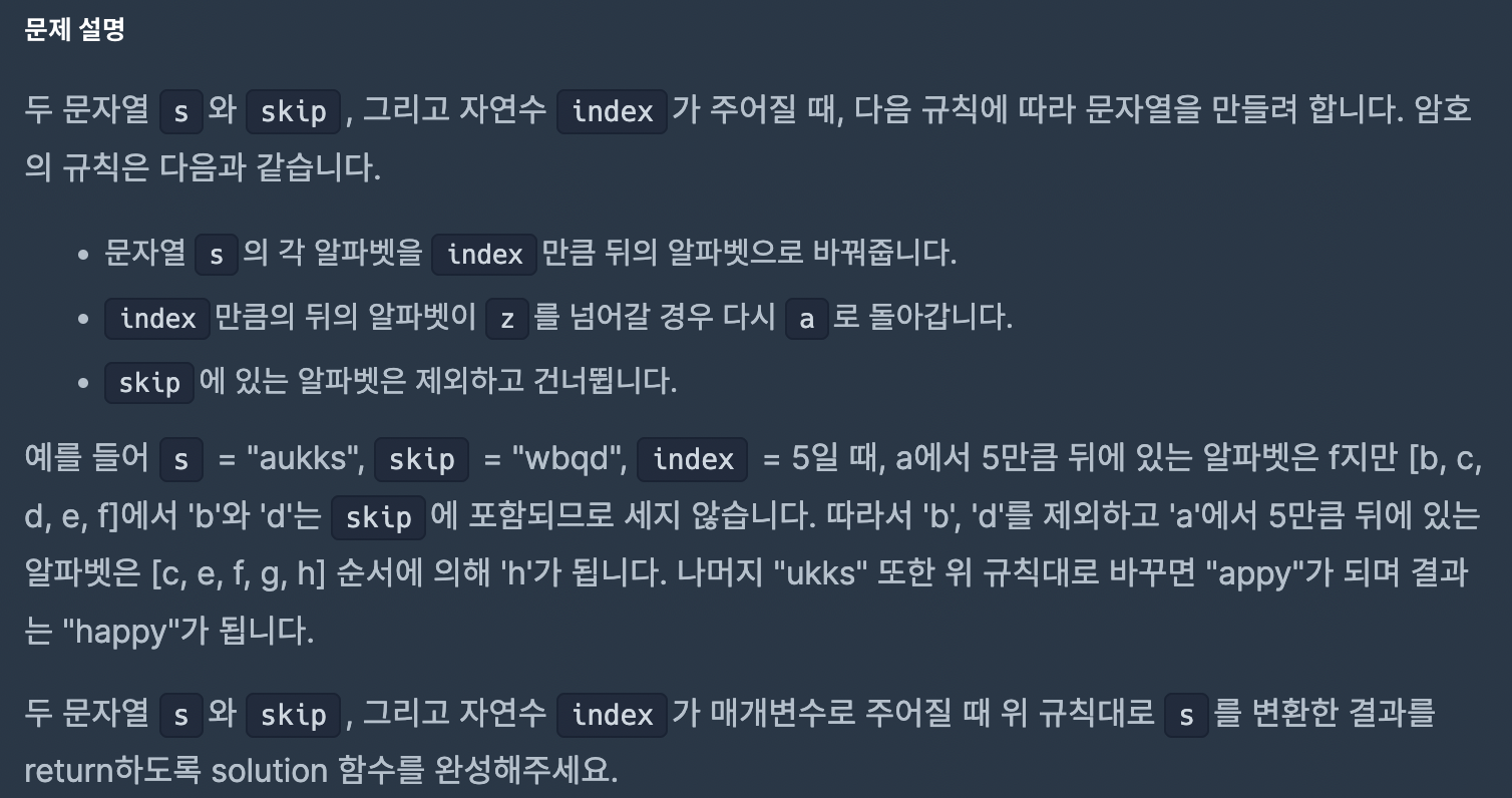 https://school.programmers.co.kr/learn/courses/30/lessons/142086 프로그래머스 코드 중심의 개발자 채용. 스택 기반의 포지션 매칭. 프로그래머스의 개발자 맞춤형 프로필을 등록하고, 나와 기술 궁합이 잘 맞는 기업들을 매칭 받으세요. programmers.co.kr 가장 가까운 같은 글자 Java로 문제 풀이하겠습니다. 이 문제는 문자열을 순회하면서 각 문자의 인덱스를 기록하고, 각 문자에 대해 가장 가까운 동일한 문자의 인덱스를 찾아야 합니다. 저는 다음과 같이 풀이하였습니다. import java.util.Arrays; import java.util.Map; import java.util.HashMap; class Solution { public int..